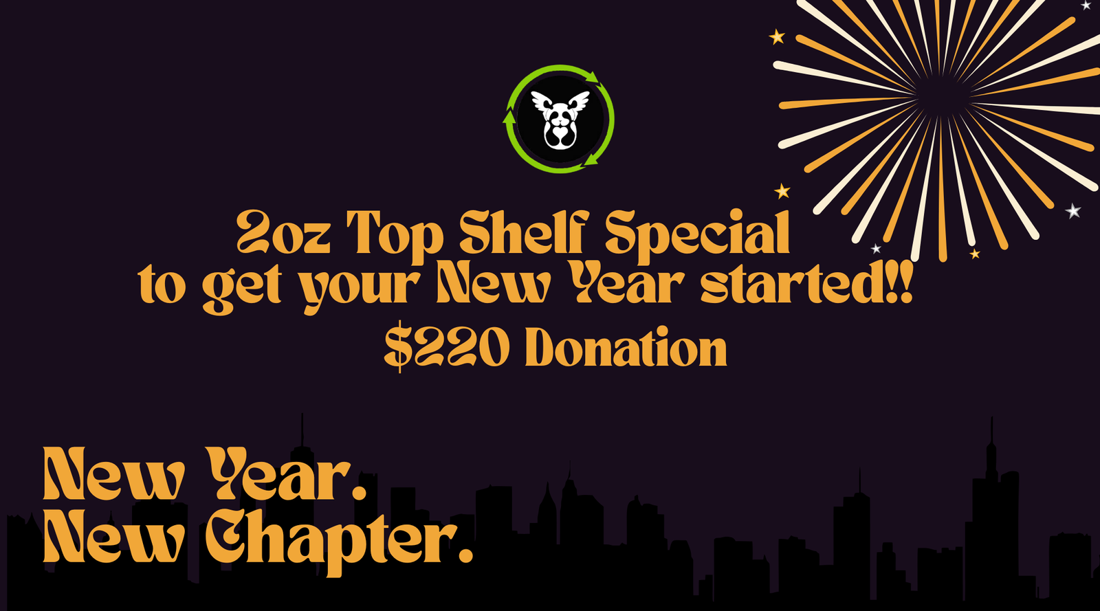 Kick off the New Year with our Top-Shelf Special! 🌿✨ Get 2 Oz of premium flower and customize your selection to suit your vibe—pick and choose from our top-shelf strains to create your perfect combo. Don’t miss this exclusive deal to start the year on a high note! $220